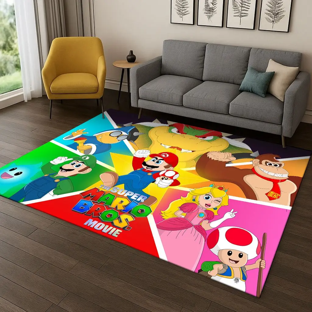 Alfombra de dibujos animados de Super Mario Bros para sala de juegos, sala de estar, dormitorio, felpudo para el hogar, decoración de cocina, alfombra antideslizante de juego para niños Gi