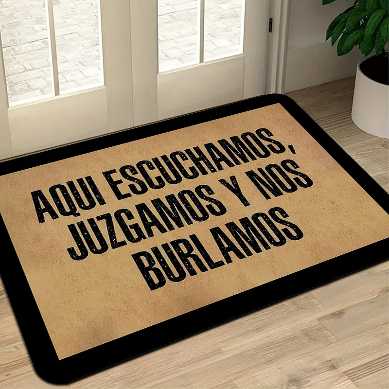 Felpudo divertido "Aquí Escuchamos, Juzgamos Y Nos Burlamos", tapete de entrada antideslizante, tapete de poliéster, tapete de pasillo, tapete de entrada para el hogar
