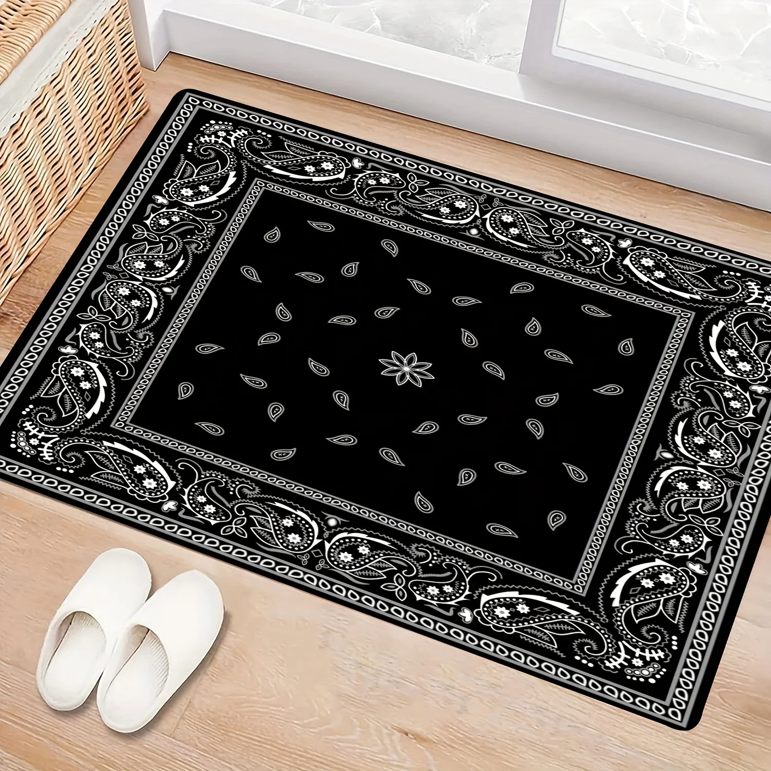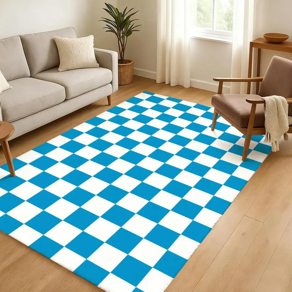 Alfombra de suelo con patrón de tablero de ajedrez, alfombra antideslizante absorbente gruesa para puerta de dormitorio y sala de estar, decoración del hogar, estera similar a Cachemira