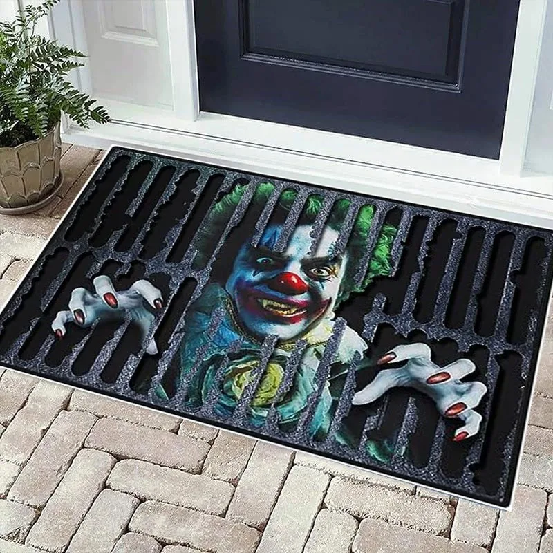 VIKAMA-alfombra divertida de payaso para Halloween, alfombrilla para puerta exterior, alfombrilla para pies, cubierta de pozo, alfombra para puerta de entrada con cara de fantasma de terror