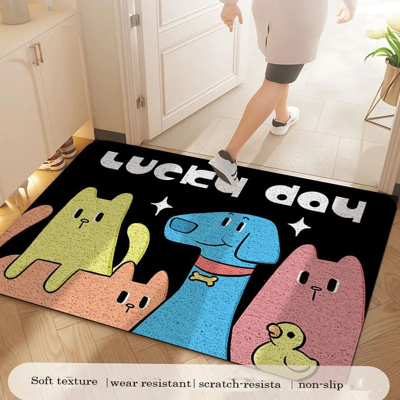Alfombrilla de pie circular de seda para el hogar, alfombrilla de dibujos animados divertidos, resistente a la suciedad, eliminación de polvo para puerta