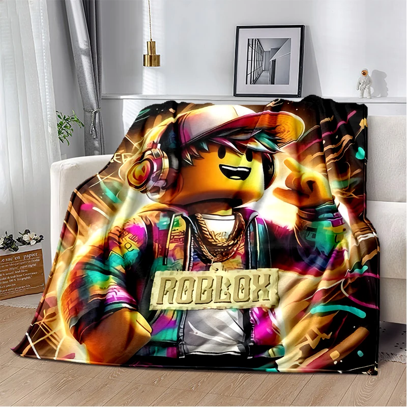 Manta de juego de dibujos animados 3D r-robloxs, manta suave para el hogar, dormitorio, cama, sofá, Picnic, viaje, oficina, manta, regalo para niños