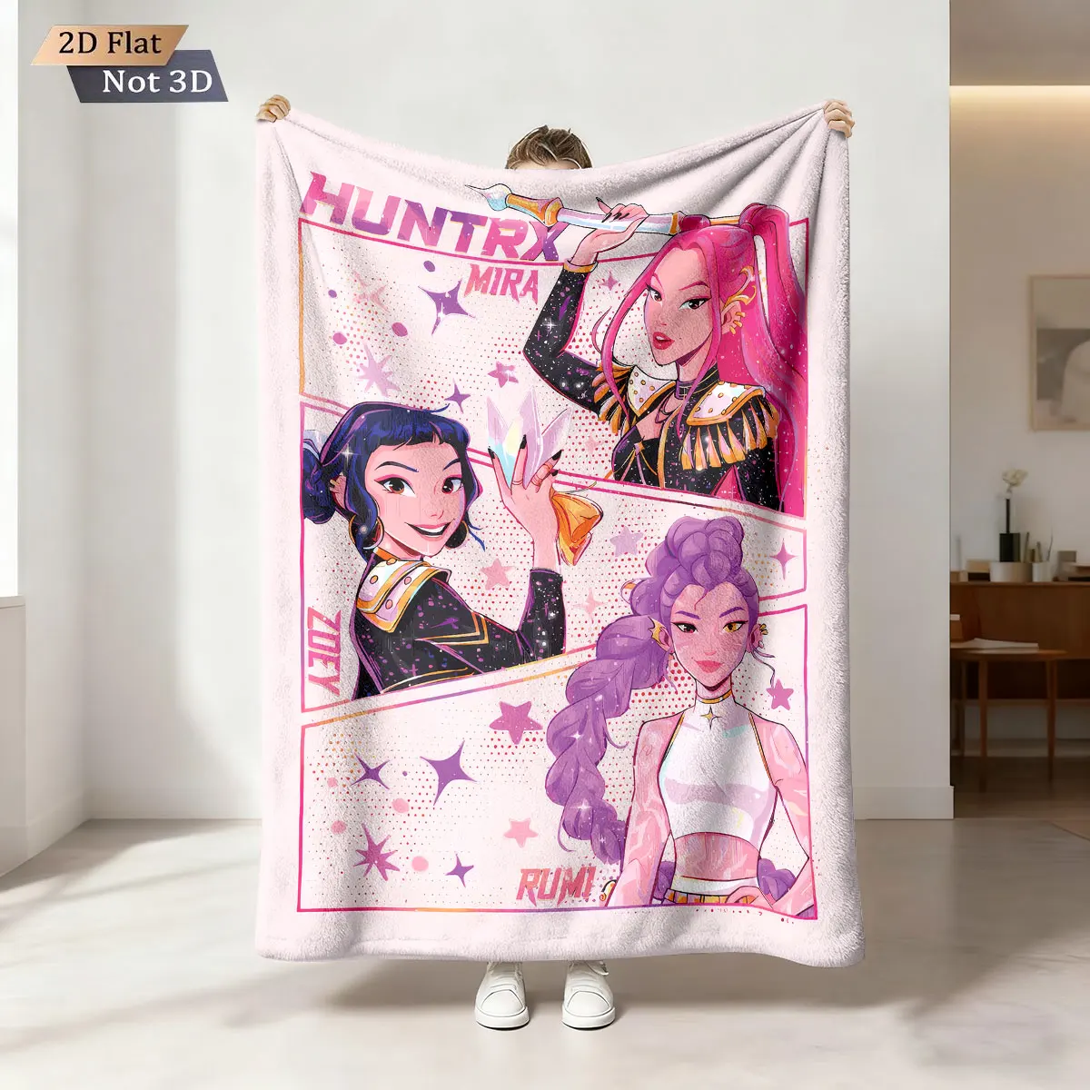 1 manta de franela estampada K-Pop Demon Hunters en varios tamaños, suave y cómoda para el almuerzo y el ocio. La máquina era
