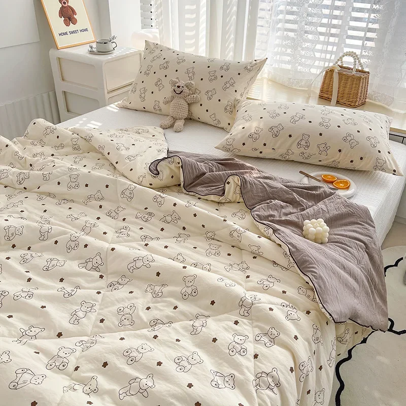 Manta de edredón fresca de verano, lavable a máquina, individual, doble, transpirable, aire acondicionado, edredón fino, manta Kawaii, textil para el hogar