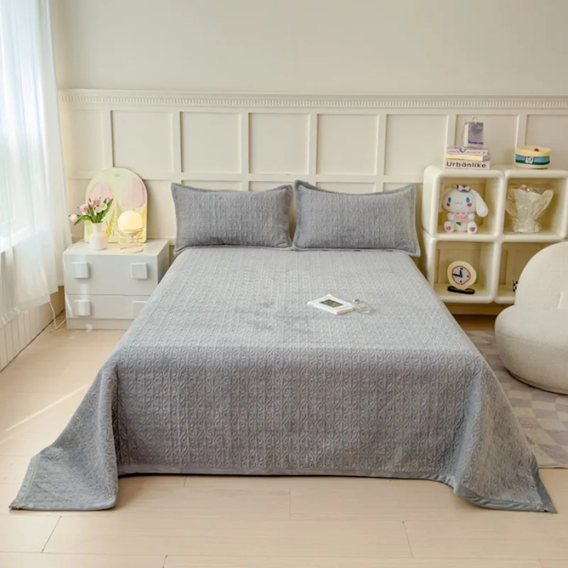 Nueva funda de cama gruesa de lana de leche de color sólido para las cuatro estaciones, manta de lana de doble cara acolchada con dobladillo acolchado, conjunto de tres piezas