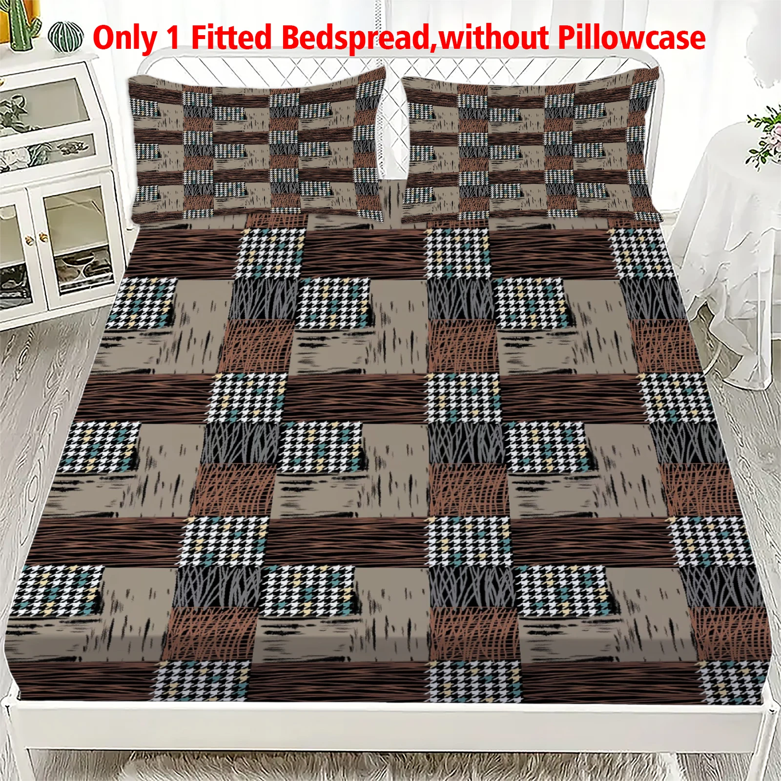 1pc Cubrecama Ajustable Vintage con Diseño de Patchwork a Cuadros, Funda Elástica para Colchón con Bolsillos Profundos, Decoración para Dormitorio Individual, Matrimonial, Queen, King