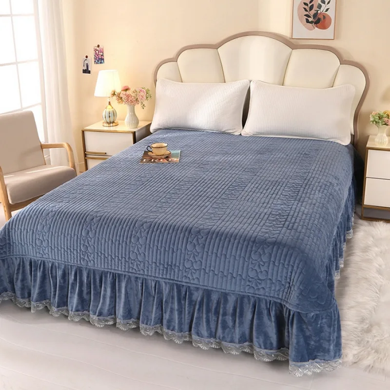 2025 nuevo color sólido simple encaje bebé terciopelo acolchado funda de cama individual modelo de encaje grande sin funda de almohada