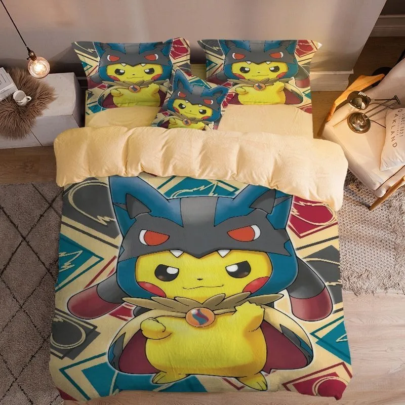 Funda de edredón de Anime, juego de cama de Super Pikachu, funda de cama suave de Gengar para niños, juego de cama King individual doble y completa