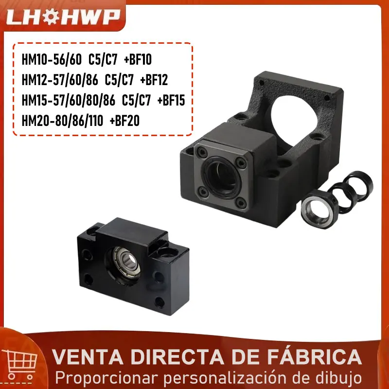 Motor de husillo de bolas integrado HM10-57 HM10-60 HM12-57 HM12-60 HM15-57 HM15-60 HM15-80/86 rodamientos de soporte BF10/BF12/BF15 hierro fundido
