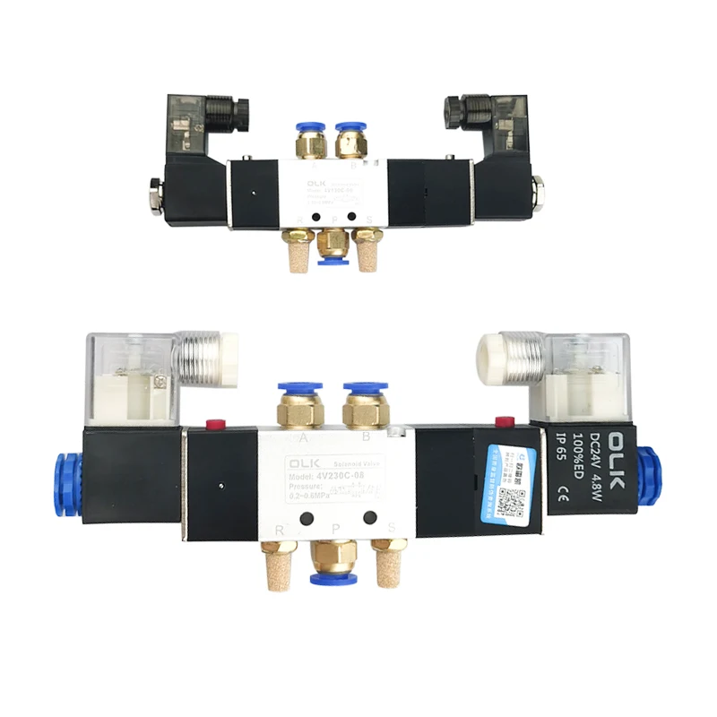 Válvulas electromagnéticas de aire de alta calidad 4V130C-06 4V230C-08 4V330C-10 4V430C-15 válvula solenoide neumática de 3 posiciones y 5 vías