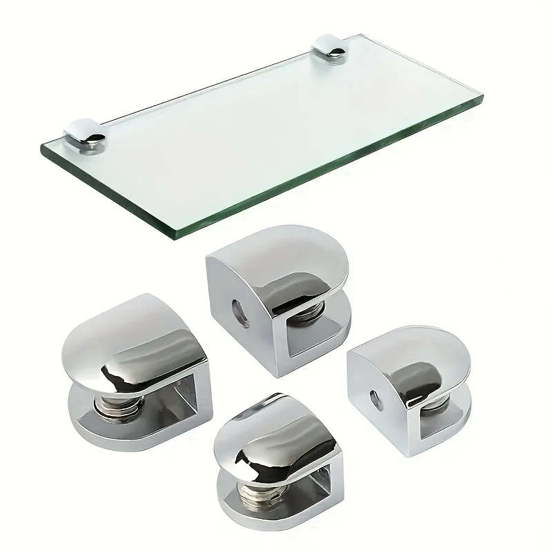 4 Soportes de Acero Inoxidable para Estantes de Vidrio, Resistentes y Ajustables, Color Plateado, para Baño