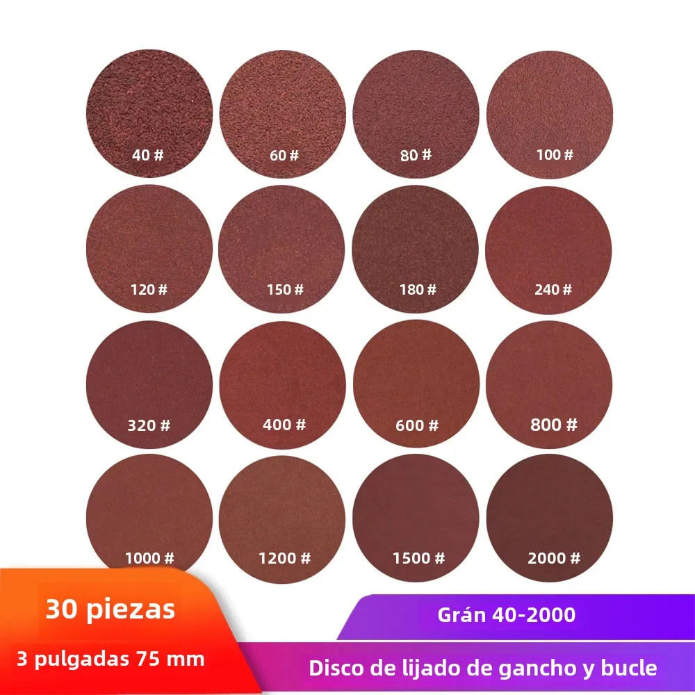 Discos de lijado de 3 pulgadas y 75mm, papel de lija de forma redonda, gancho de grano 40-2000, herramienta de pulido abrasivo de papel de arena para amoladora, herramienta rotativa