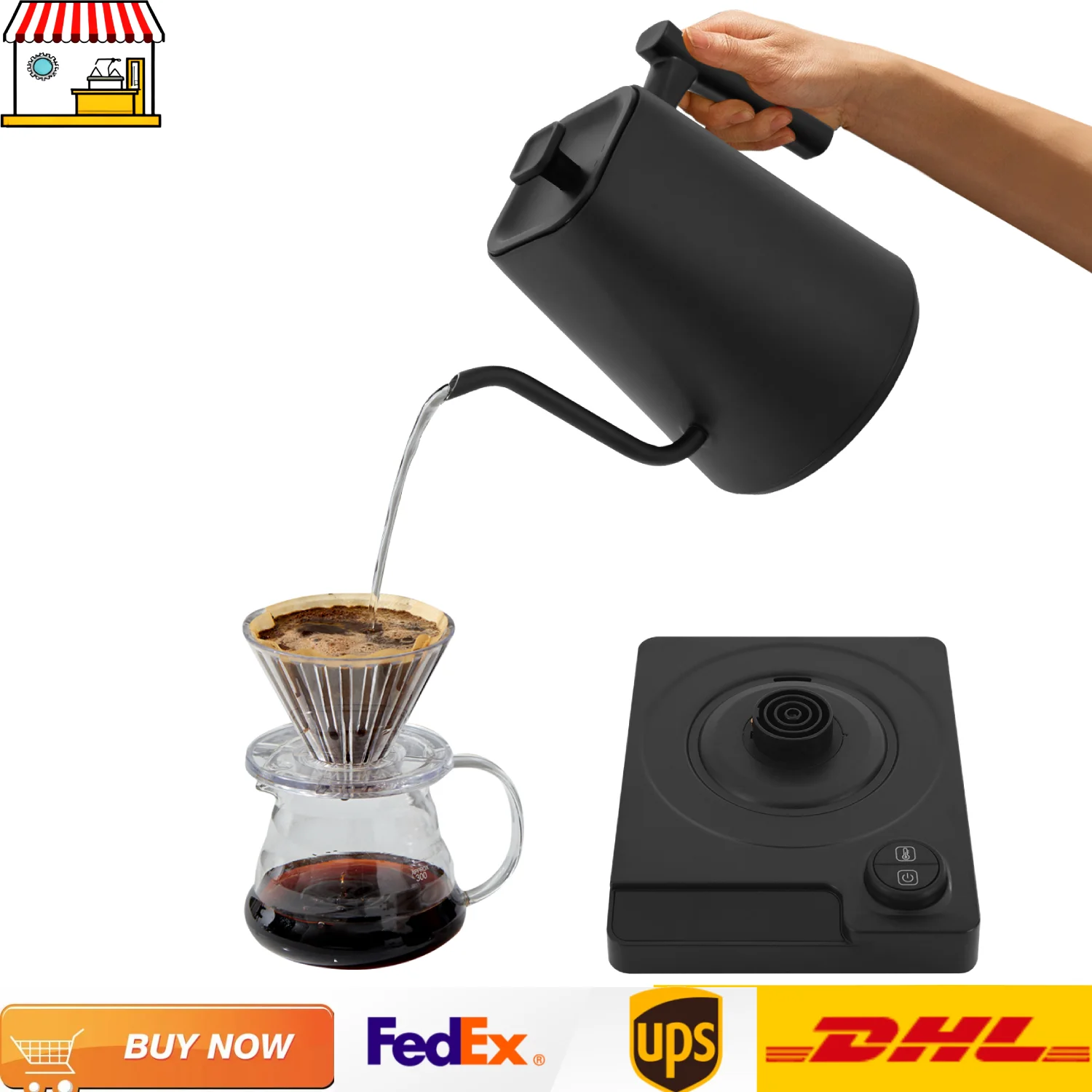 Hervidor eléctrico 1200W 1L para té y café | Hervidor de agua con cuello de cisne de acero inoxidable 304 | Negro/Blanco