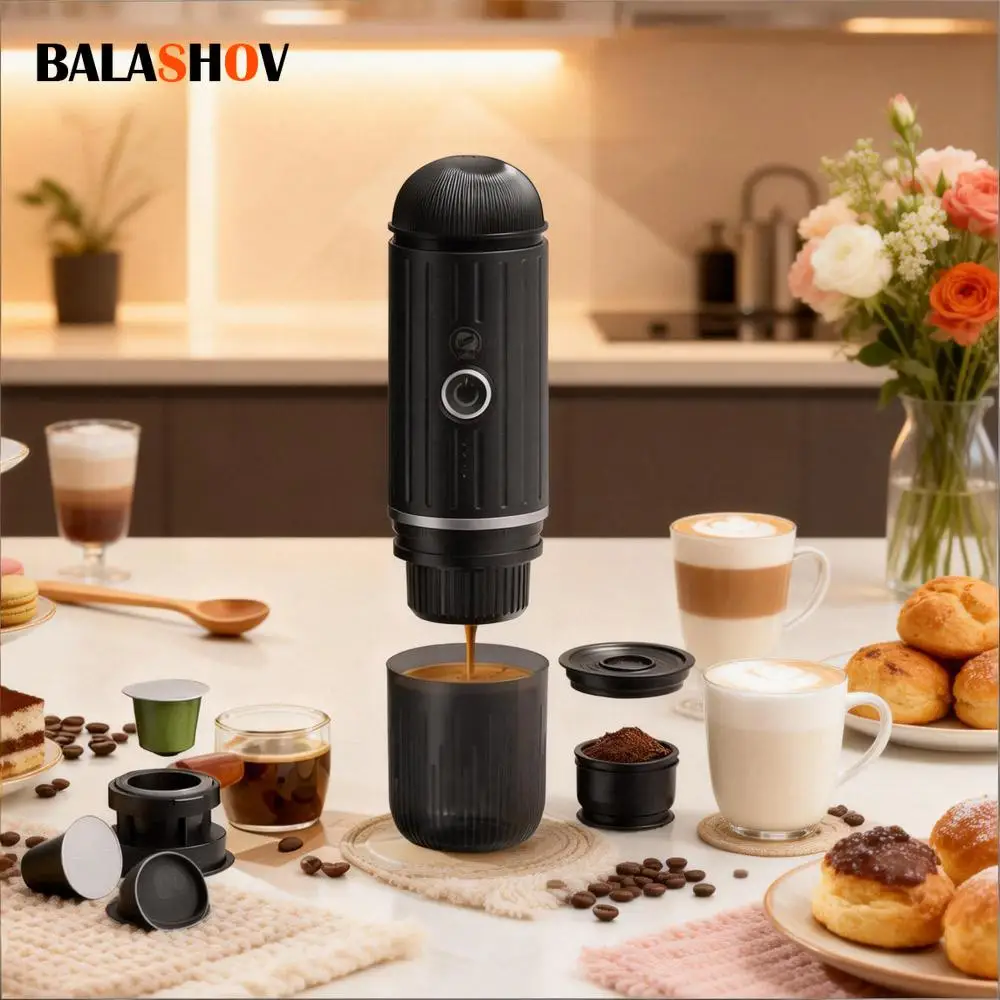 Cafetera Espresso eléctrica para coche y hogar, cafetera para acampar, cápsula de polvo 2 en 1, cafetera de viaje inalámbrica