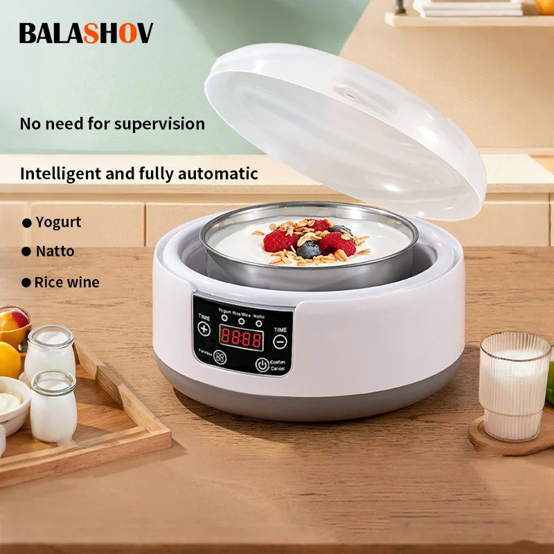 Yogurtera automática eléctrica de 1,0l, máquina de yogur termostática multifuncional, máquina de arroz, vino, Natto, revestimiento de acero inoxidable