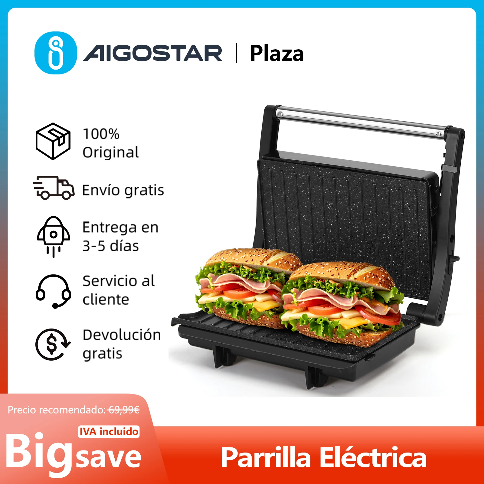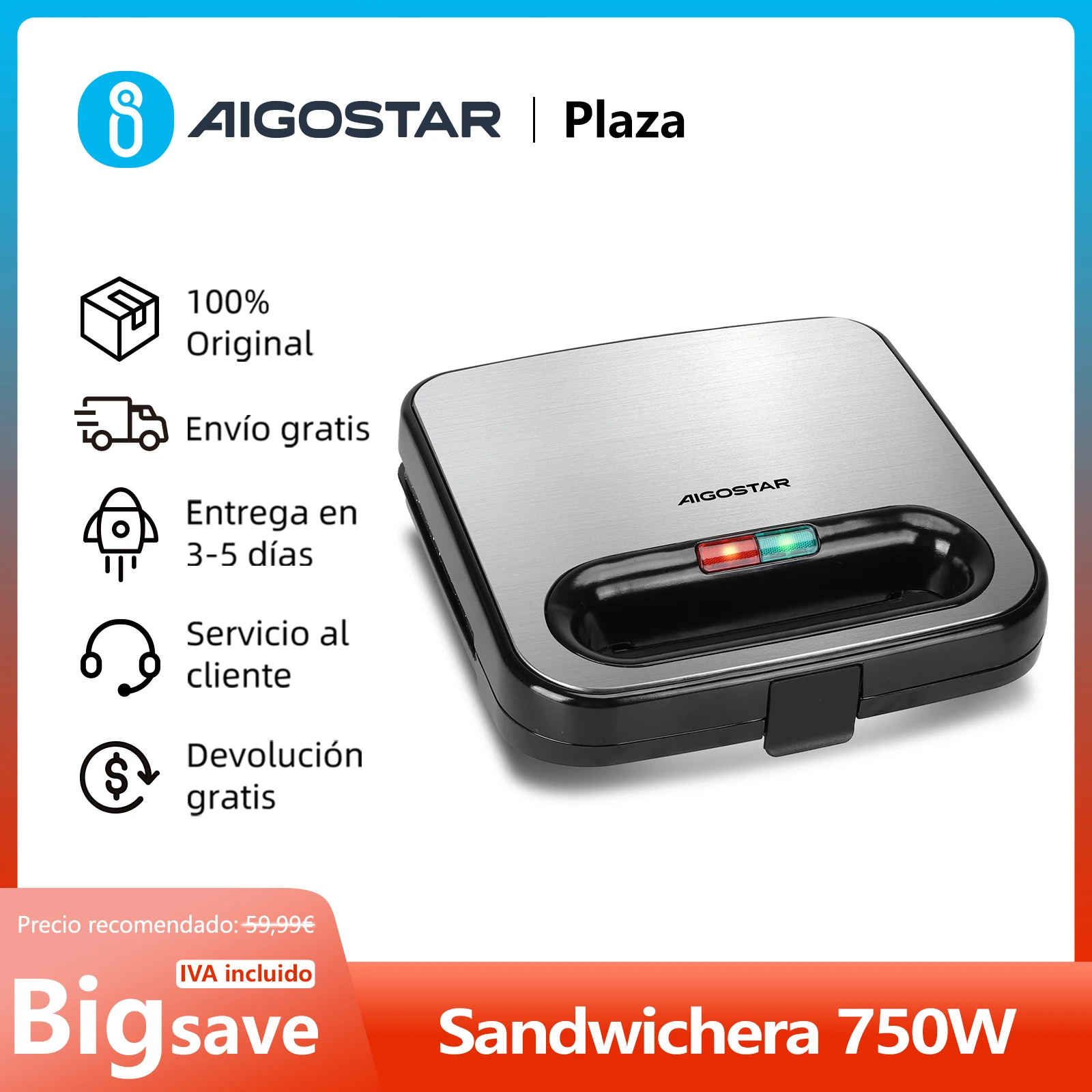 AIGOSTAR Sandwichera 3 en 1, Grill y Gofrera. 3 Placas Desmontables Antiadherentes e Intercambiables. ( 750W )