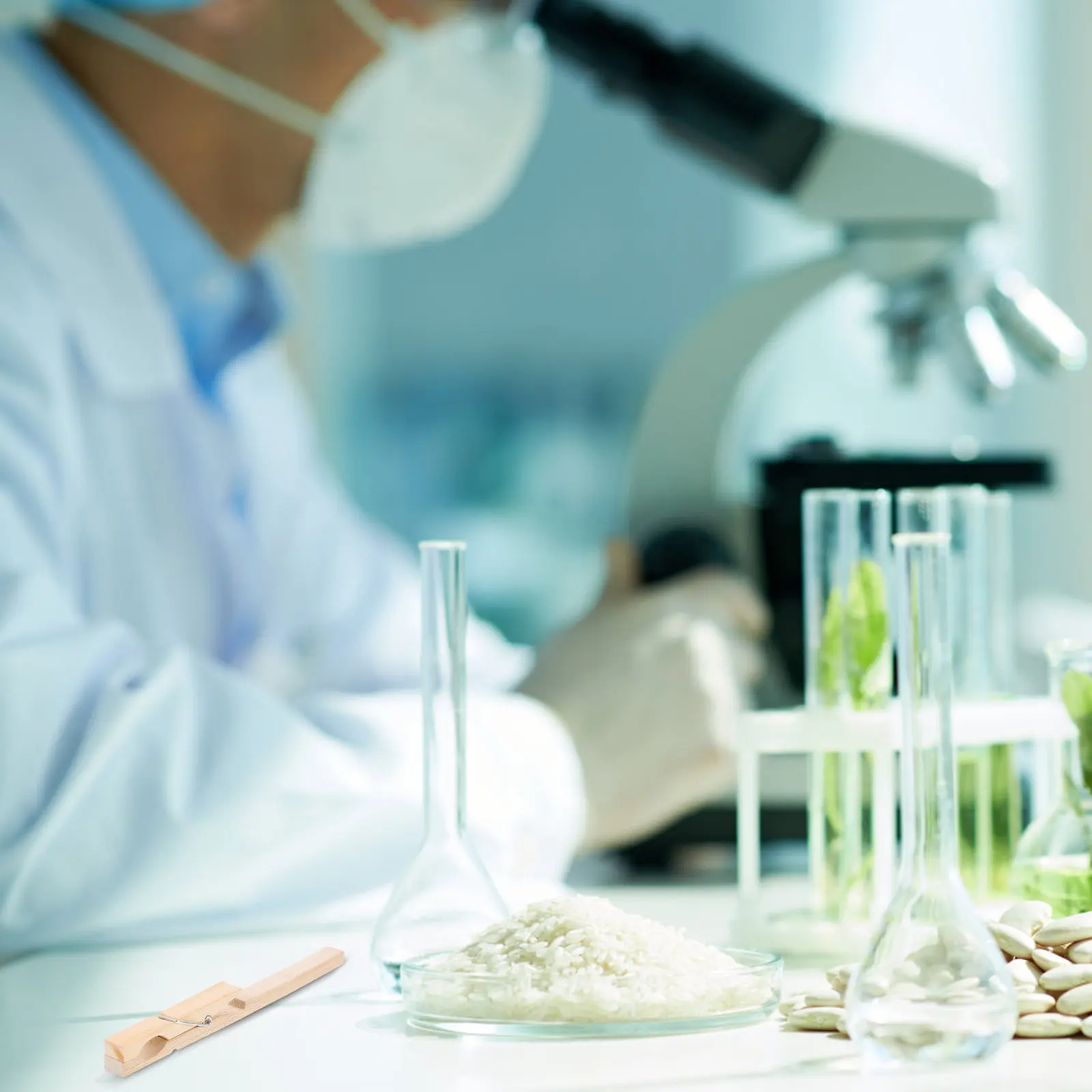 10 clips para tubos de ensayo de bambú, soporte resistente para tubos de laboratorio, pinza química de mango largo para experimentos, soporte de vidrio para material didáctico