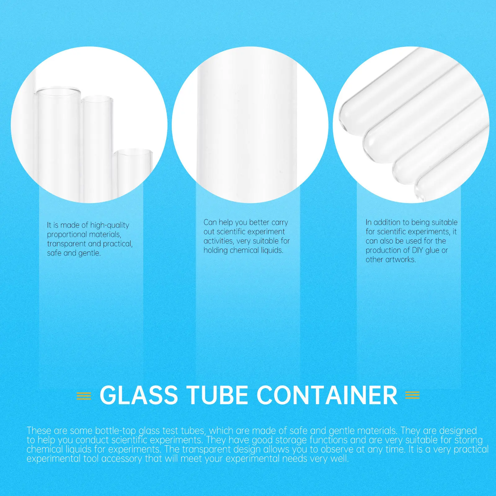 Tubos de ensayo de vidrio transparente, contenedores para experimentos científicos con fondo plano, soluciones de almacenamiento para obras de arte DIY, 50 Uds.