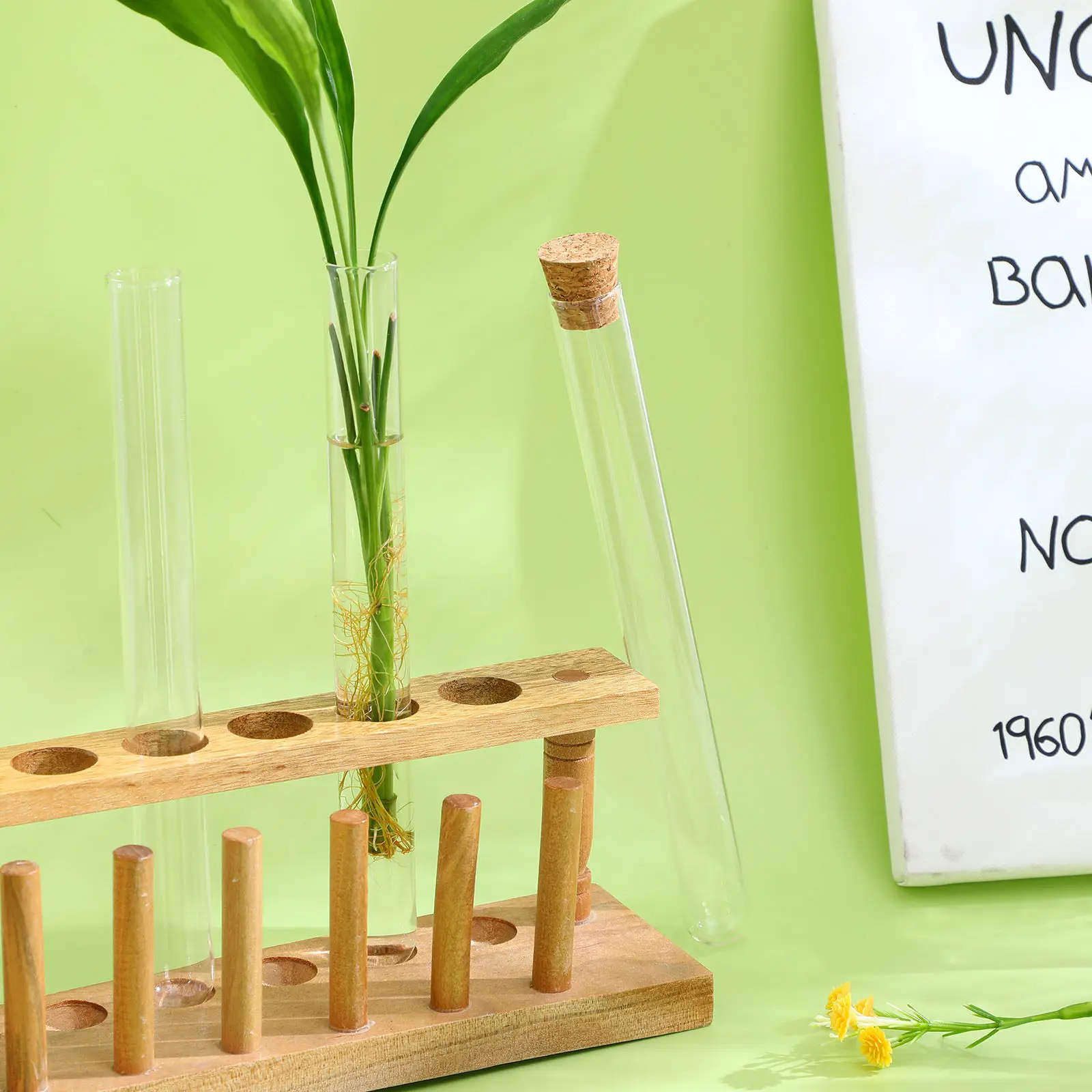 Tubos de ensayo de vidrio con tapones de madera, contenedores de almacenamiento transparentes para laboratorio, equipo para experimentos de química en casa y escuela, 8 Uds.