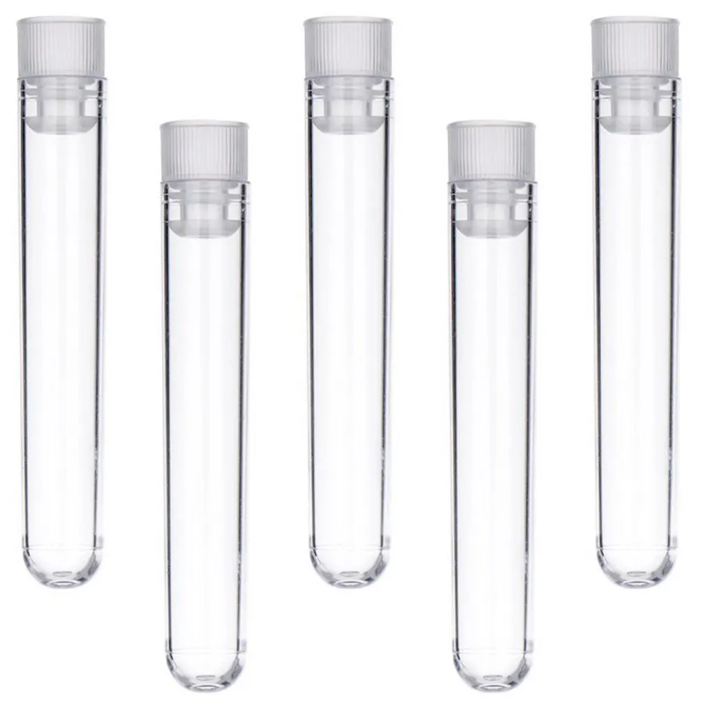25 uds tubos de ensayo de plástico transparentes 12x75mm tubos de regalo de almacenamiento de muestras duraderos tapas de 5ml tubo de regalo con tapa tubo de ensayo con tapa
