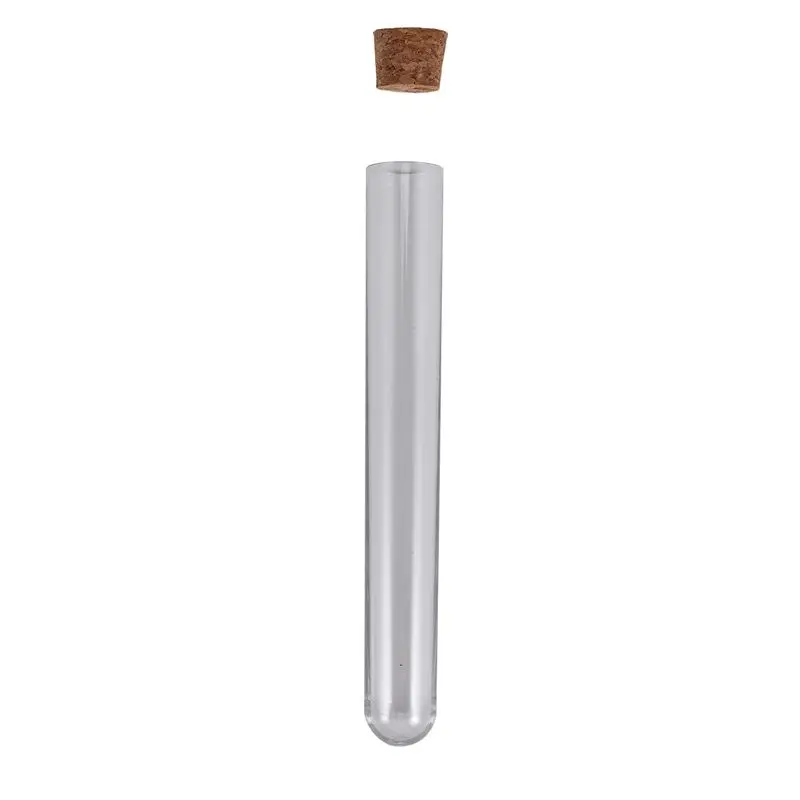 100 Uds tubos de ensayo de plástico 20x150mm viales transparentes carcasa dura tapones de corcho ecológicos a prueba de fugas muestras de belleza de viaje loción Gel