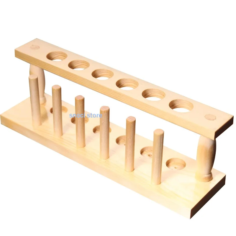 Estante para tubos de ensayo de madera, 6 orificios de 22 m de diámetro y pines, estante para tubos colorimétricos de madera maciza, suministros de laboratorio