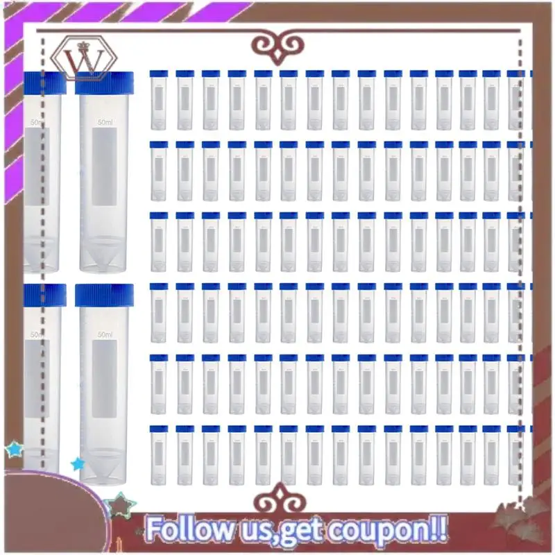 ABBG-tubos de centrífuga de pie de 50ML, [paquete de 100] tubo de ensayo de plástico con tapas de rosca, tubos de ensayo estériles de 50ML con tapas