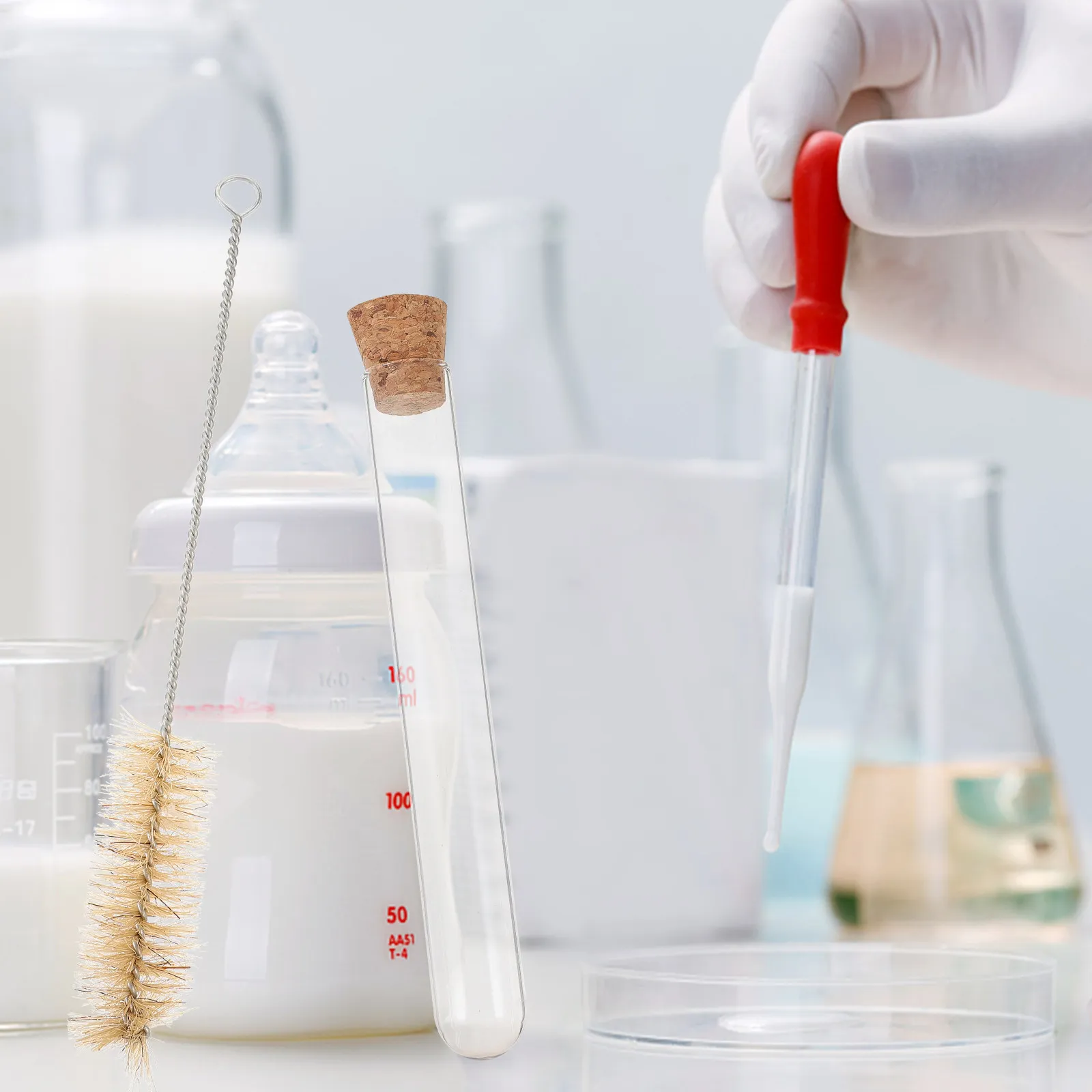 10 unids/lote tubo de ensayo de fondo redondo de vidrio grueso de laboratorio de 18x180mm con tapón de corcho utilizado en contenedores de tubos de química escolar