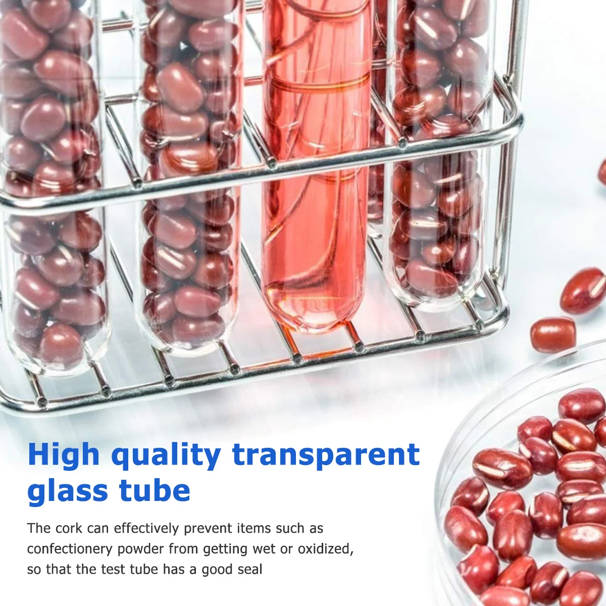 20 tubos de ensayo de vidrio de 20x150 mm, transparentes, de material premium con tapones de corcho, a prueba de fugas, almacenamiento portátil para muestras