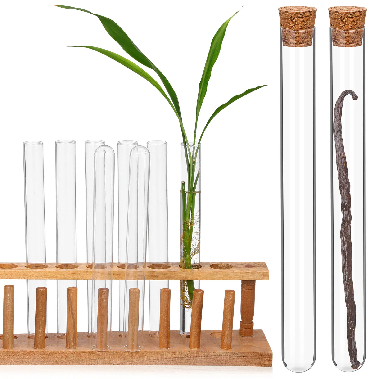 Tubos de ensayo de vidrio, tapón de madera sellado, tubos de almacenamiento de muestras transparentes, equipo de experimentos de química, accesorios de enseñanza, 8 Uds.