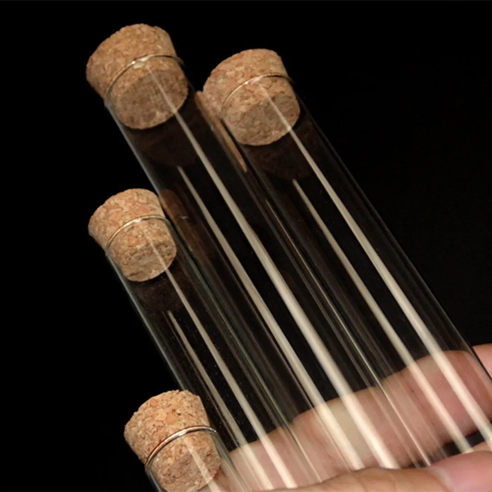 24 unids/lote 15x100mm tubo de ensayo de vidrio de fondo plano con tapones de corcho para tipos de pruebas