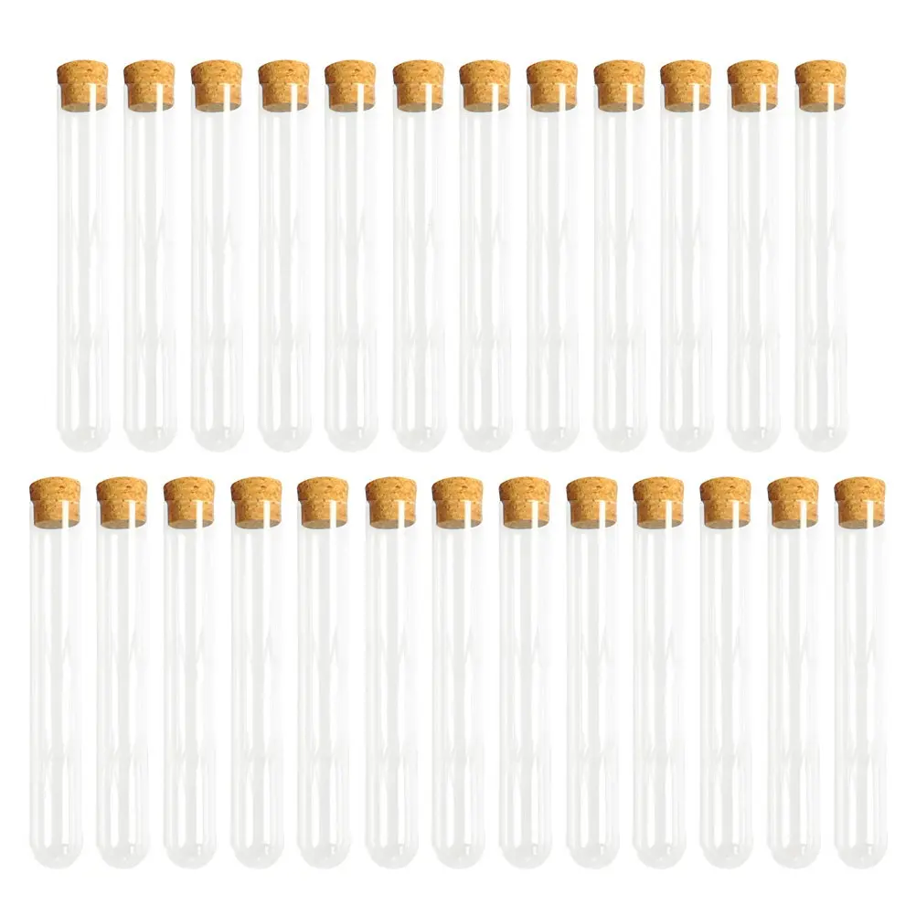 25 tubos de ensayo de plástico sin escala, con tapón de corcho, para almacenar líquidos, polvos y plantas en casa