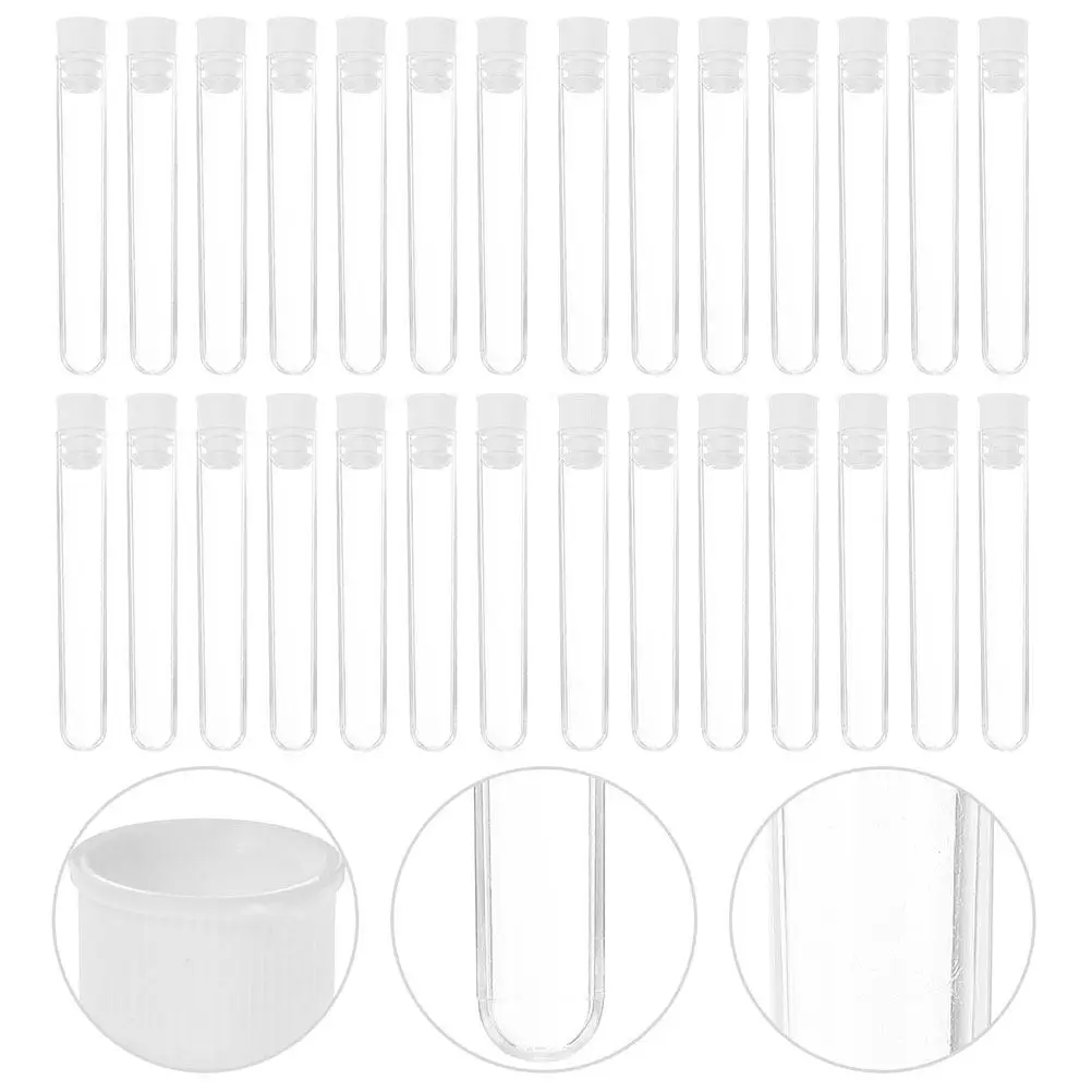 50 tubos de ensayo de plástico transparente de 16x100 mm con tapas, recipientes para lociones, para viajes, almacenamiento, pequeños recipientes de plástico
