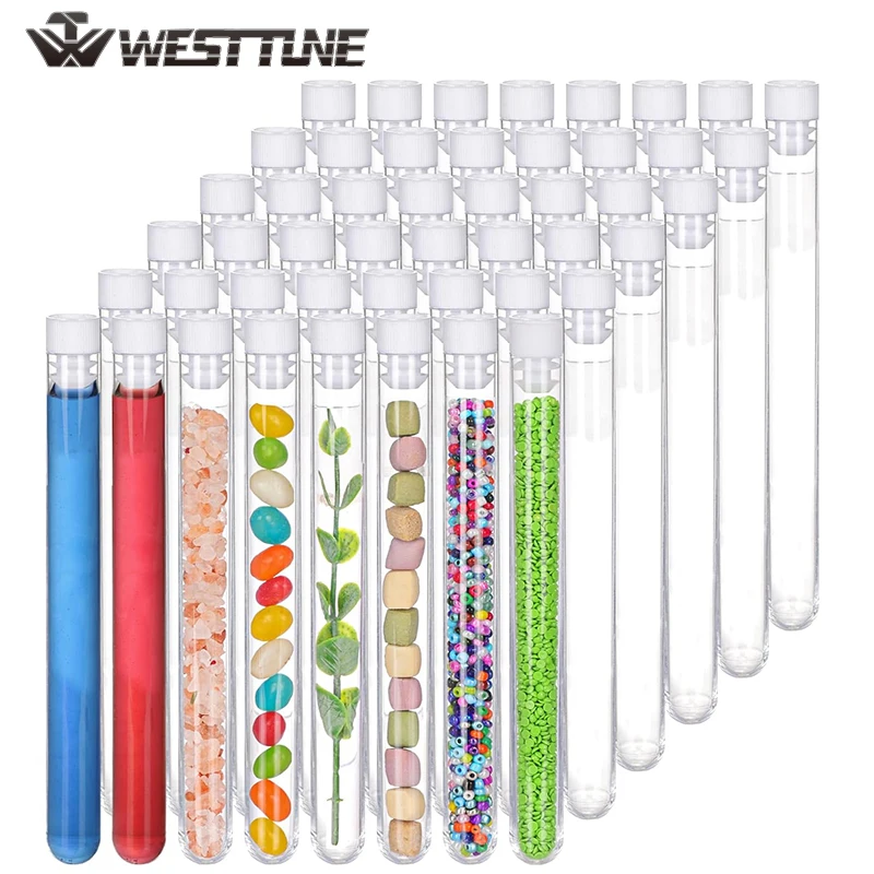 WESTTUNE 50 Uds tubos de ensayo de plástico transparente 12x100mm tubos de laboratorio prueba con tapas para experimentos científicos contenedores de muestras plantas