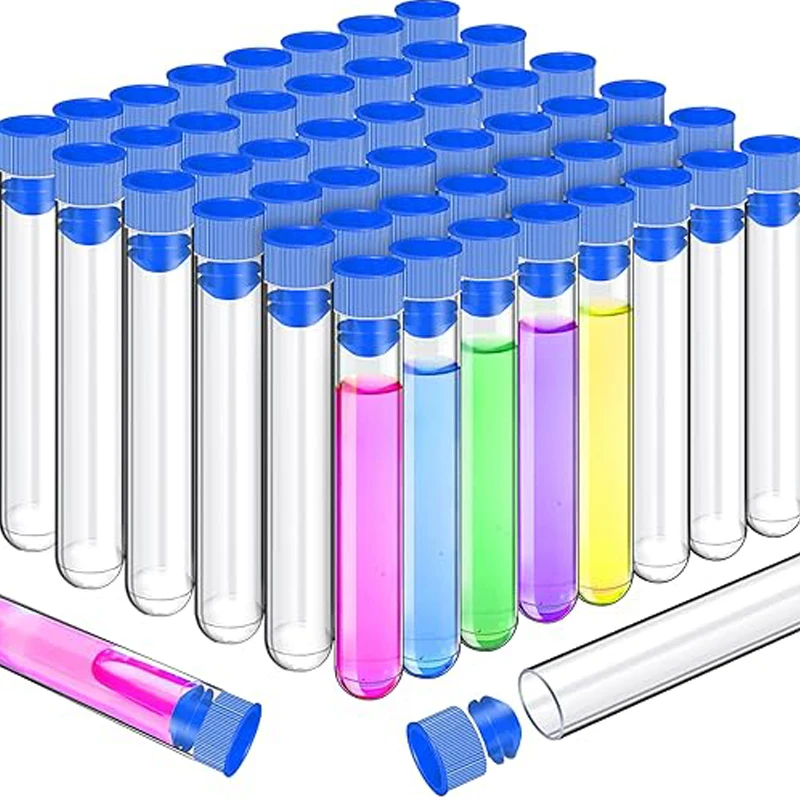 50 Uds. Tubos de 16x100mm, tubos de ensayo de plástico transparente con tapas, tubos de laboratorio de ensayo de 13ml para experimentos científicos, suministros científicos