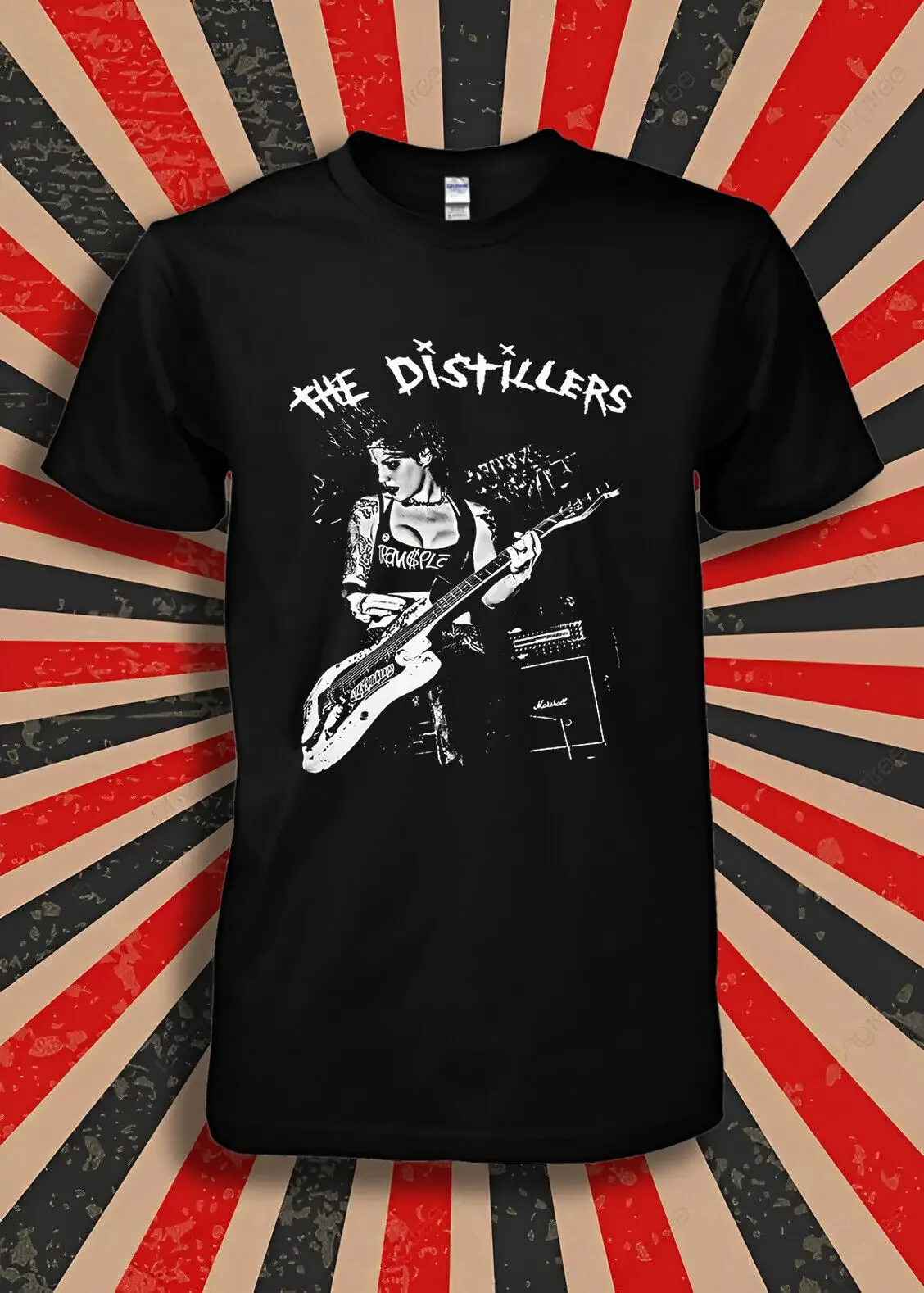 Plantilla de banda-Camiseta negra de talla grande 100% algodón The Distillers East Bay Radical Hooligan Hooligans Ruby Soho Salvation Lets Go