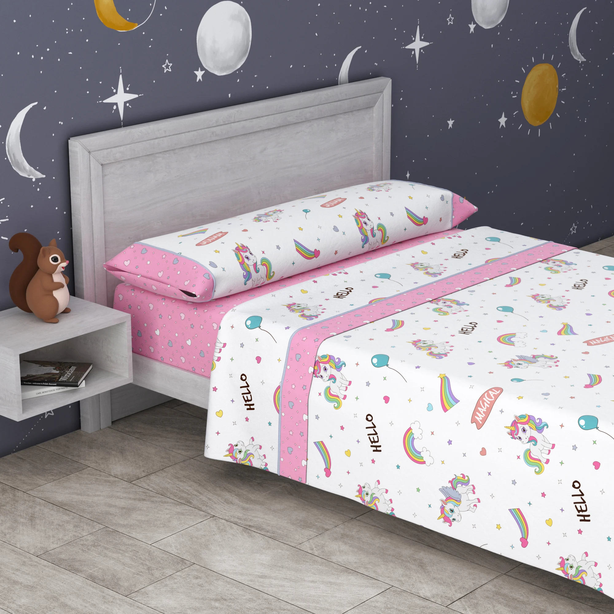 Juego de Sábanas Infantiles Cama 90x190/200 cm – 3 Piezas (Encimera + Bajera Ajustable + Funda de Almohada) – 50% Algodón 50%