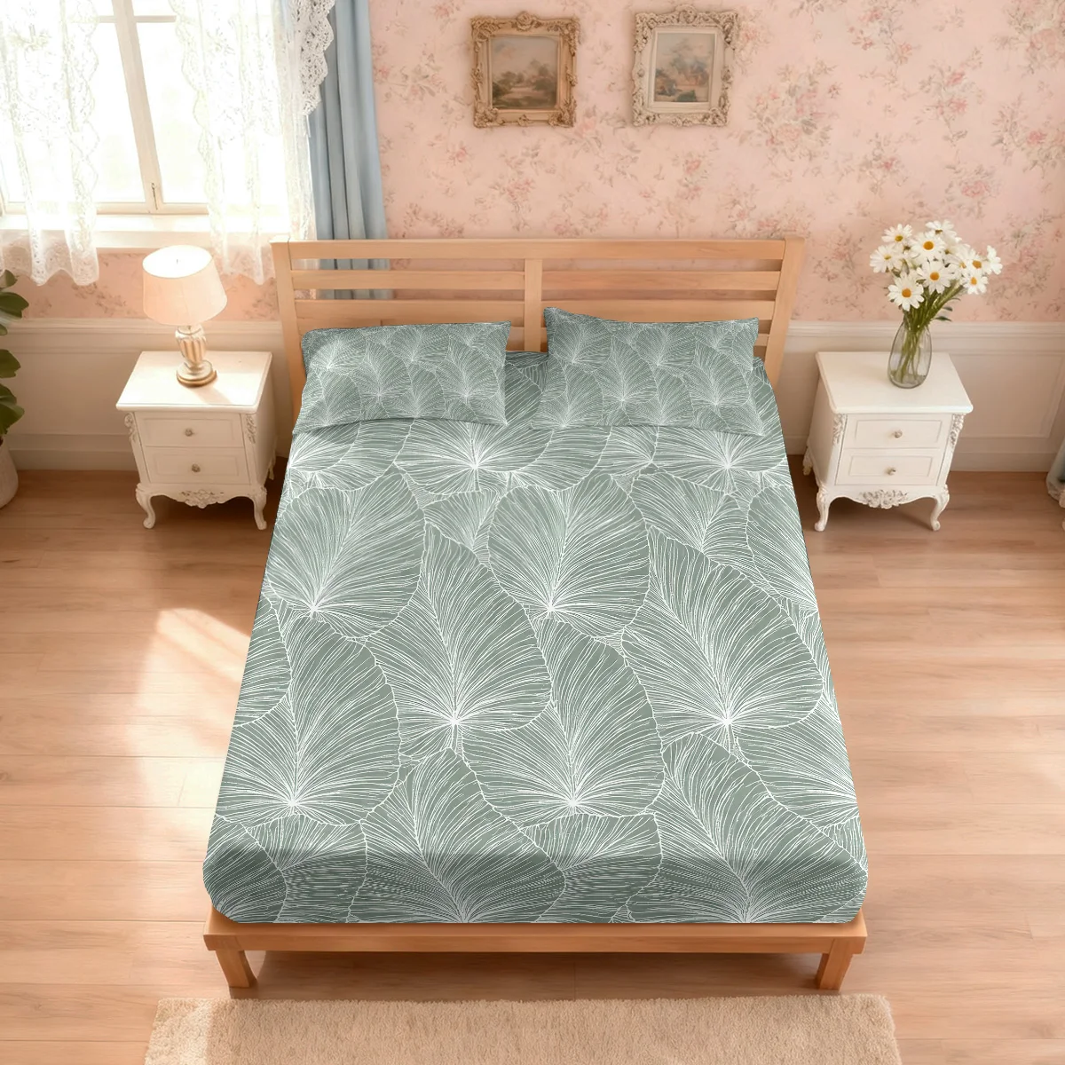Juego de 3 Sábanas sin Relleno con Estampado de Hojas Verdes, en Varios Tamaños, Cubrecamas Suaves, Decoración para Dormitorio, Lavables