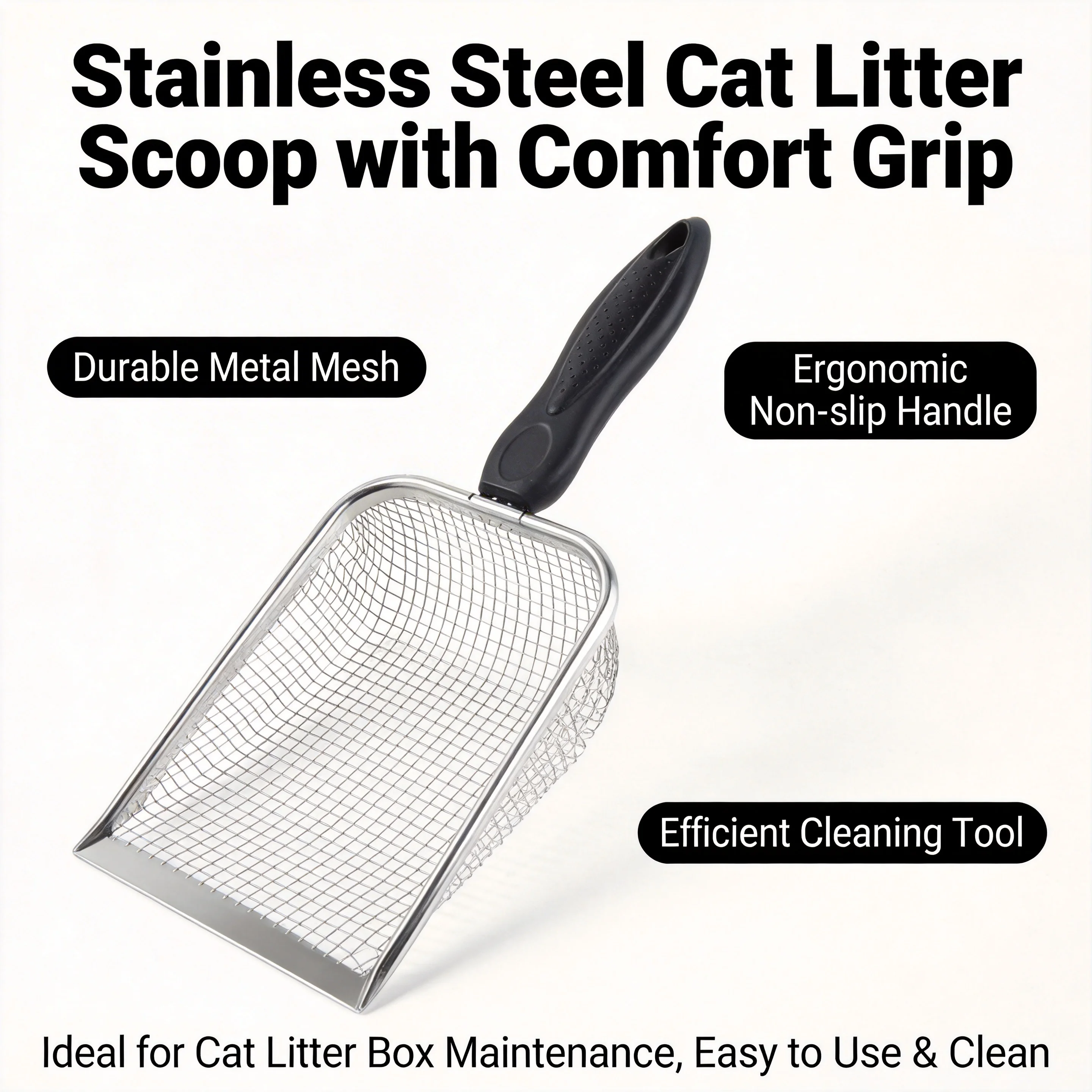 Pala para arena de gatos de acero inoxidable – Cuchara con malla fina para arena y sustrato de reptiles, herramienta para limpiar excrementos y lecho.
