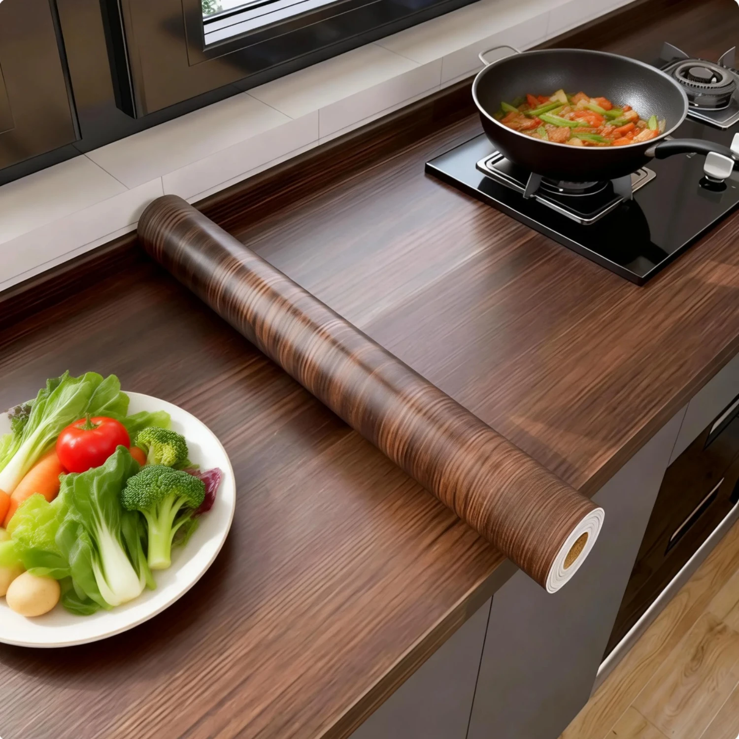 Papel de contacto con textura de madera marrón de 40/55 cm, película de vinilo removible autoadhesiva para una fácil aplicación en muebles y gabinetes de cocina
