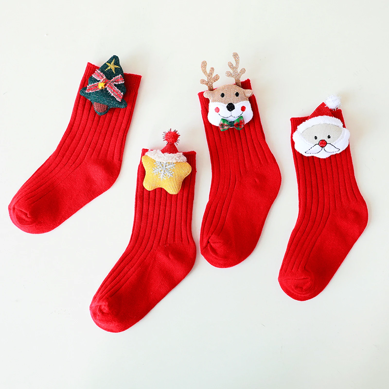 Calcetines navideños para niños y niñas, bonitos calcetines navideños de ciervo/Papá Noel/estrella/árbol, decoración de muñecos, calcetines tejidos hasta la pantorrilla