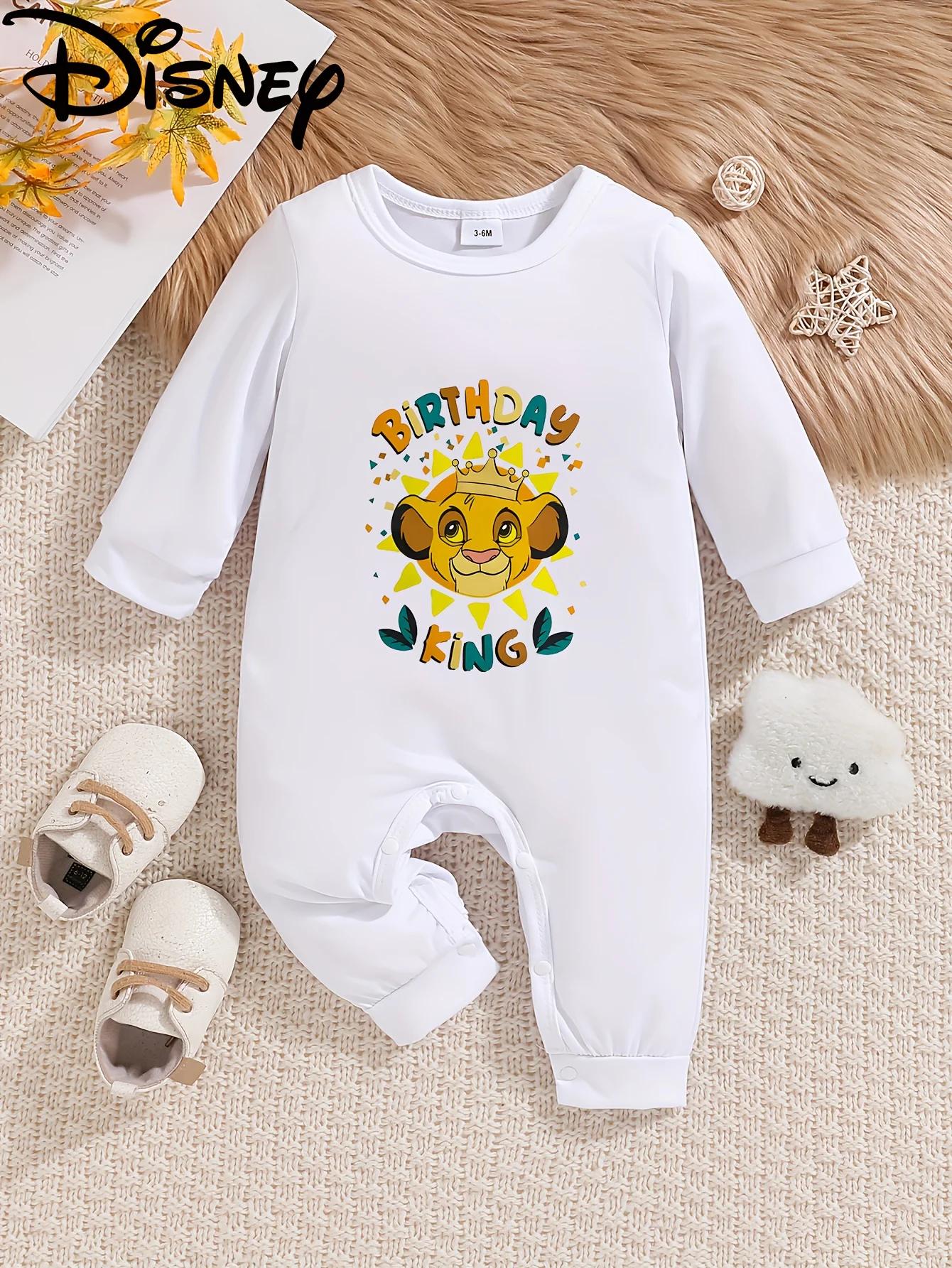 【Autorizado】Disney Cute Simba del Patrón del Rey León, Material de poliéster, Cuello redondo, Mono de manga larga para niños moderno y lindo para primavera y otoño, Regalo perfecto para adolescentes, niños y niñas