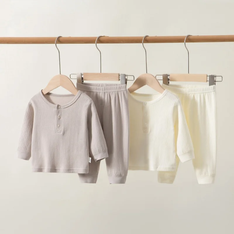 Conjuntos de Pijamas de Algodón para Bebés de 0 a 3 Años, Ropa de Dormir de Manga Larga Acanalada, 2 Piezas, Ropa de Dormir para Recién Nacidos, Ropa de Estar Suave
