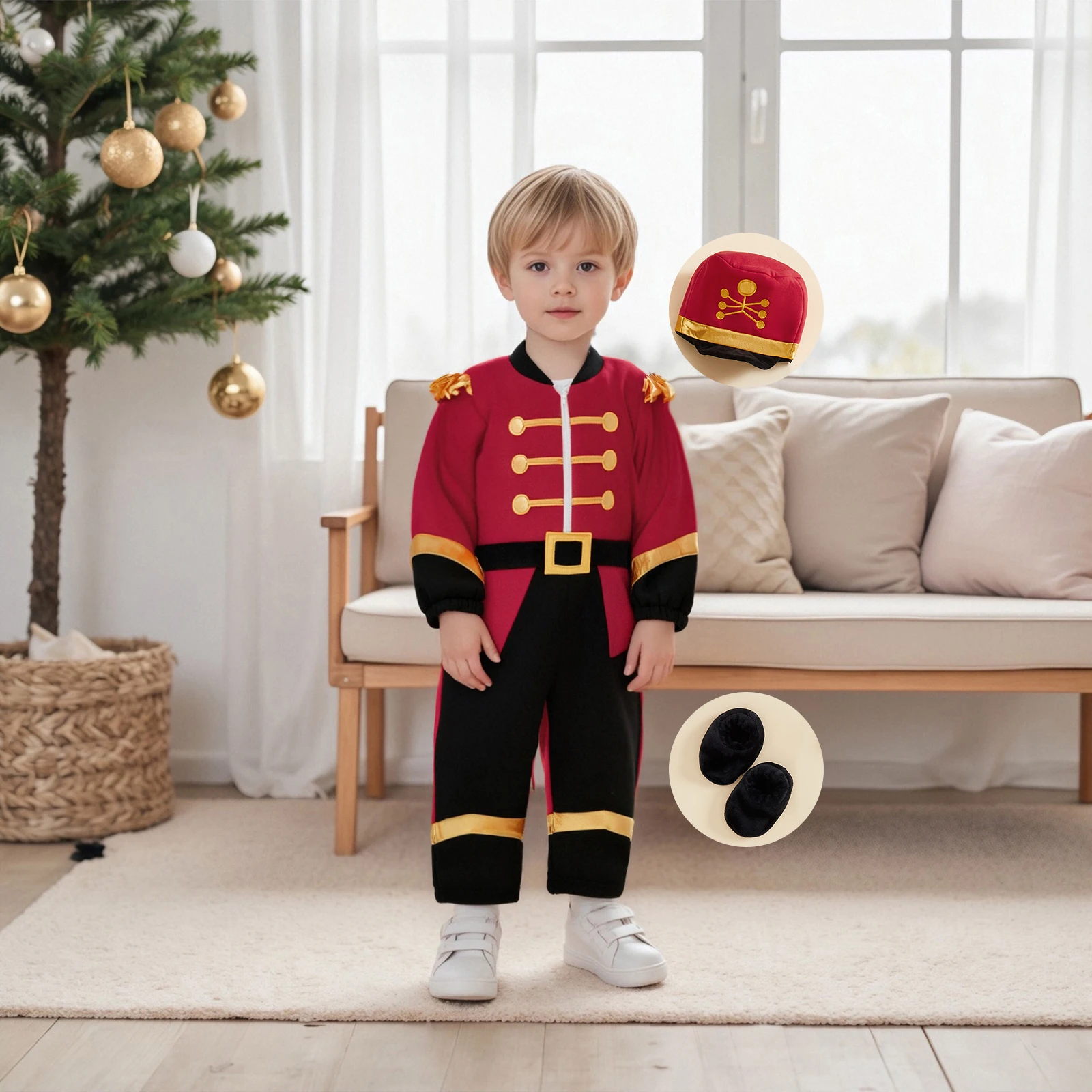 Ropa de Navidad para niños, mono de retazos de manga larga con sombrero, zapatos, disfraz de Cosplay