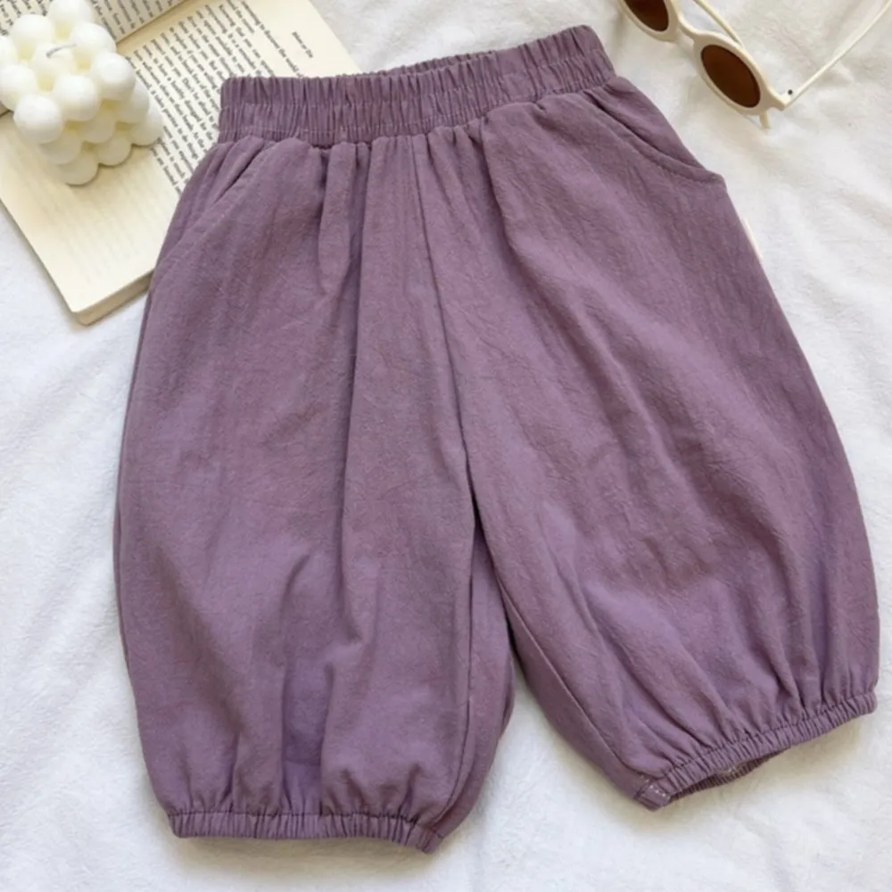 Pantalones para niños, pantalones cortos de algodón de estilo fino de verano, pantalones cortos sueltos, pantalones cortos para niños y niñas, pantalones de color sólido, ropa para niños infantiles