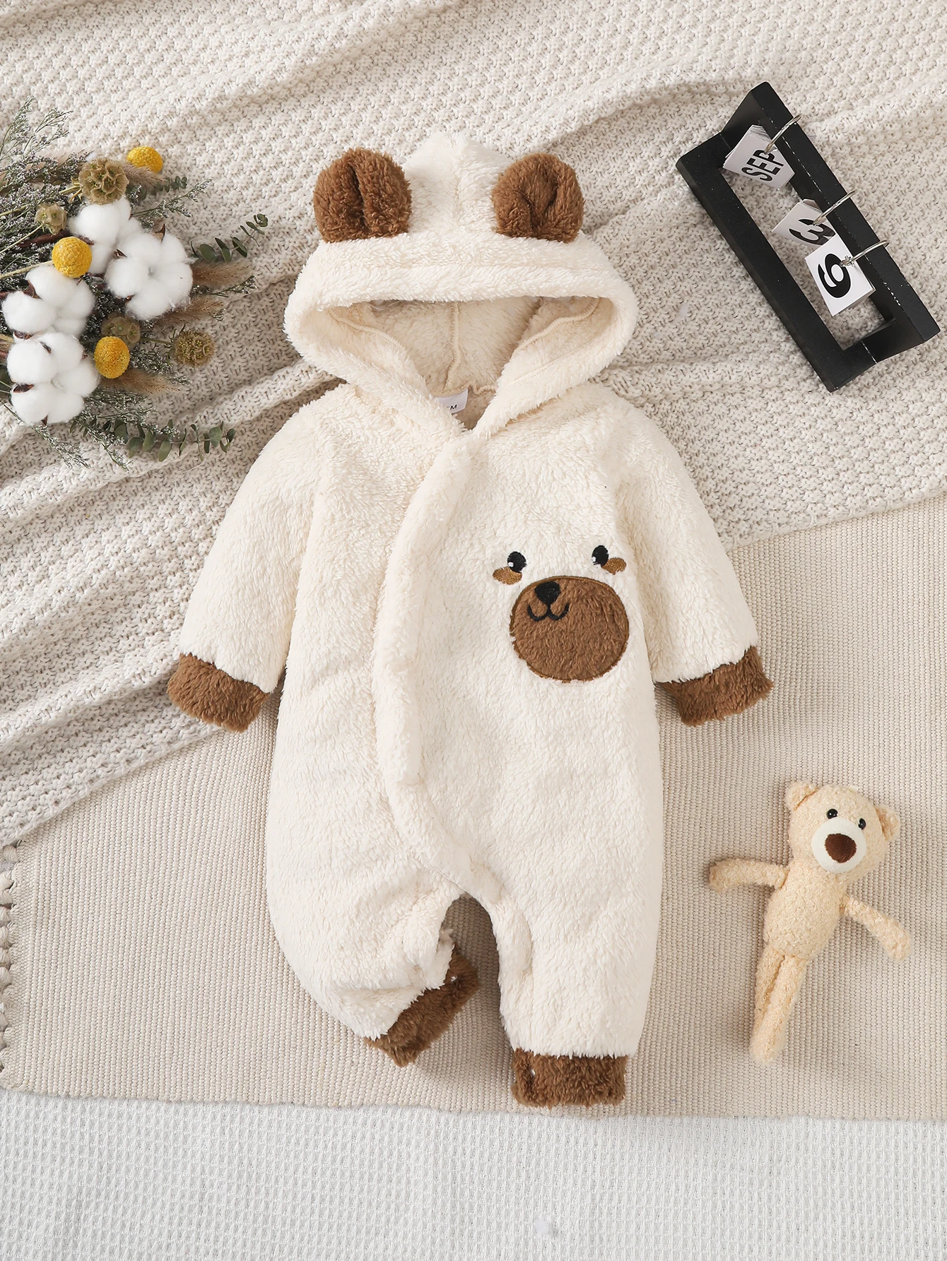 Mono con capucha con estampado de oso para bebés de 0 a 1 año de invierno