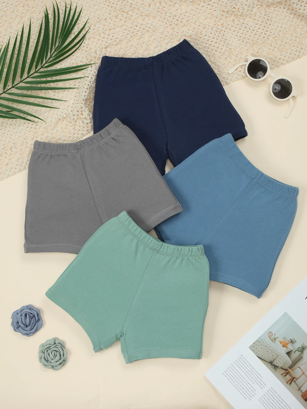 Paquete de 4 Pantalones Cortos para Niños Pequeños, Pantalones Cortos de Verano Holgados para Bebés, Pantalones Cortos de Algodón Suave para Niños, Color Sólido y Cómodos