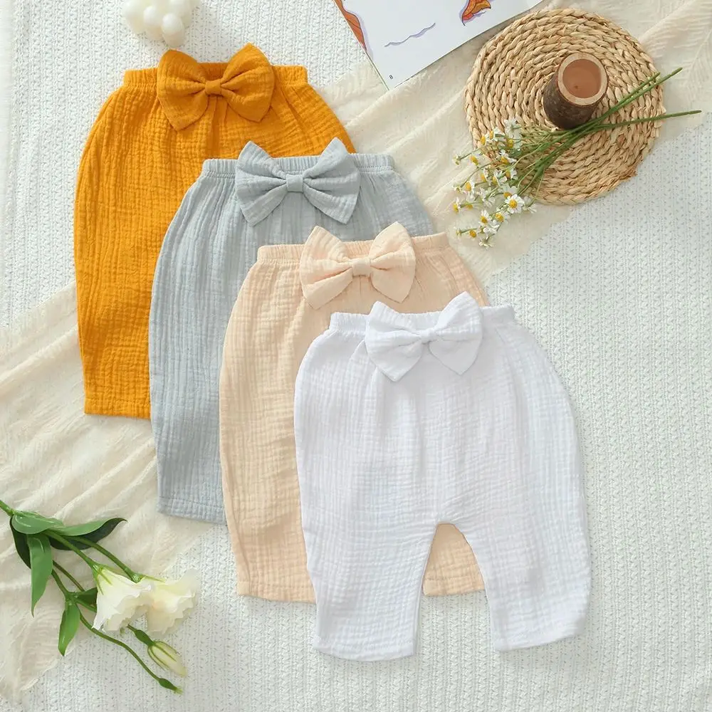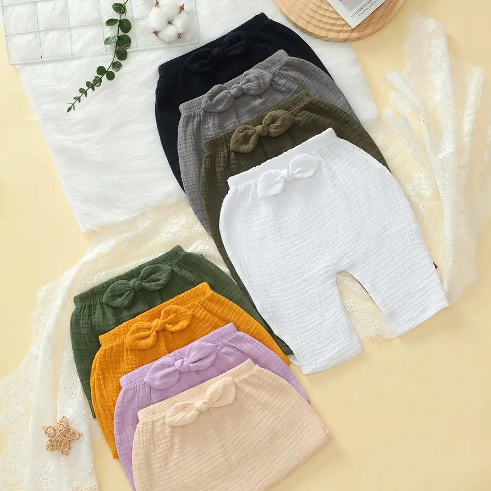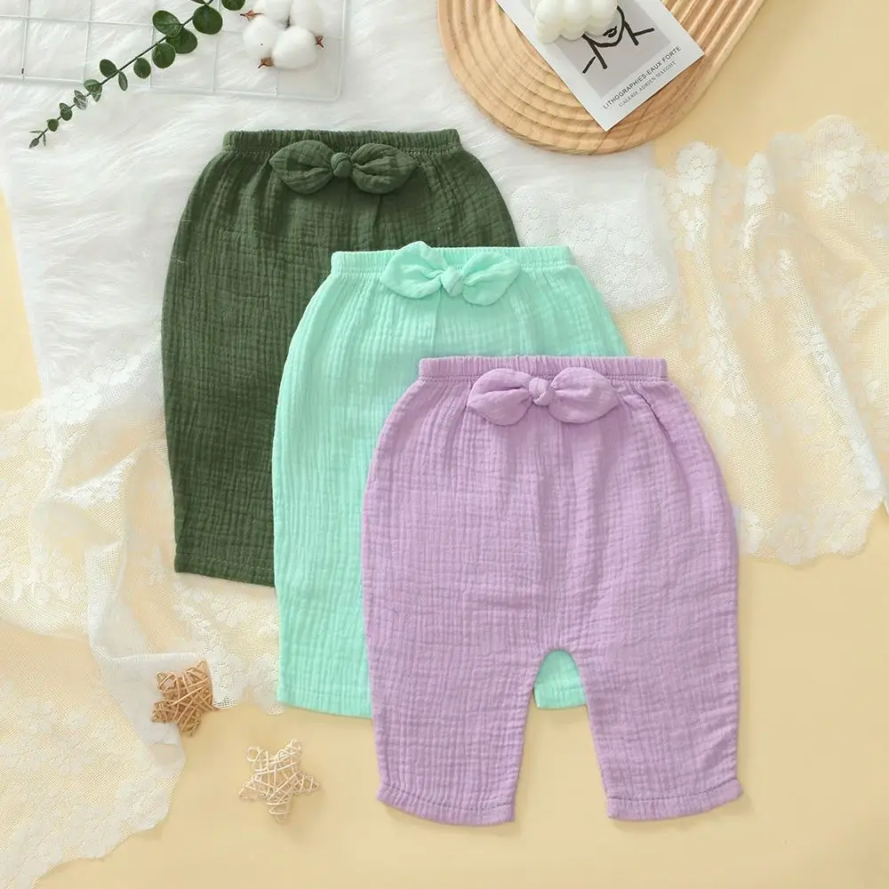 Paquete de 3 Pantalones de Bebé Elásticos y Sueltos para Niños y Niñas, Leggings de Algodón Suave para Bebés, Diseño con Lazo Bonito y Color Liso