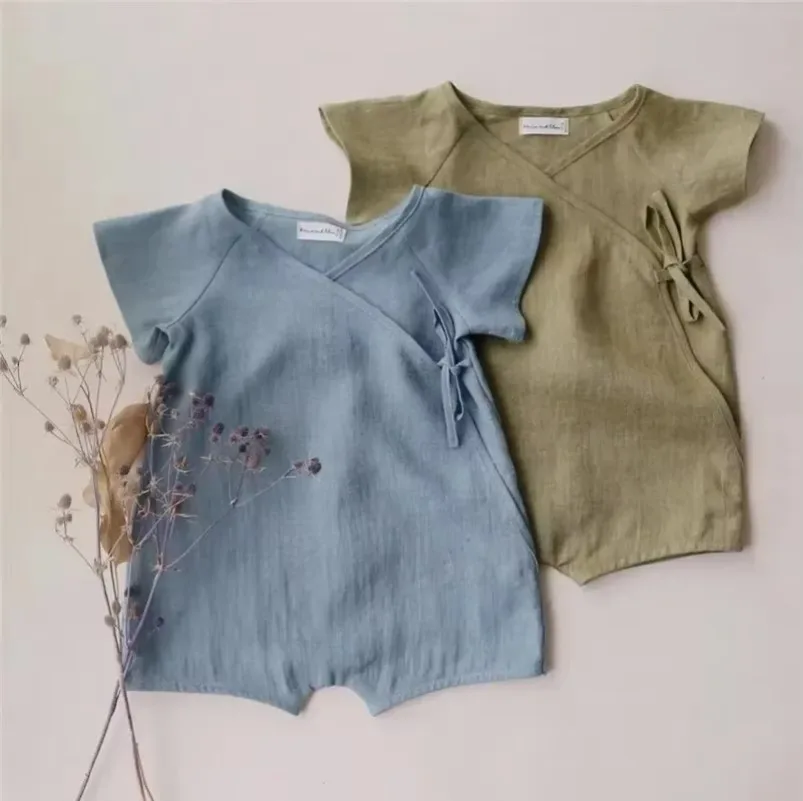 Peleles para bebés, mono infantil, mono informal para niñas recién nacidas, mono para niños pequeños, monos, nuevo verano de 0 a 24M de lino y algodón