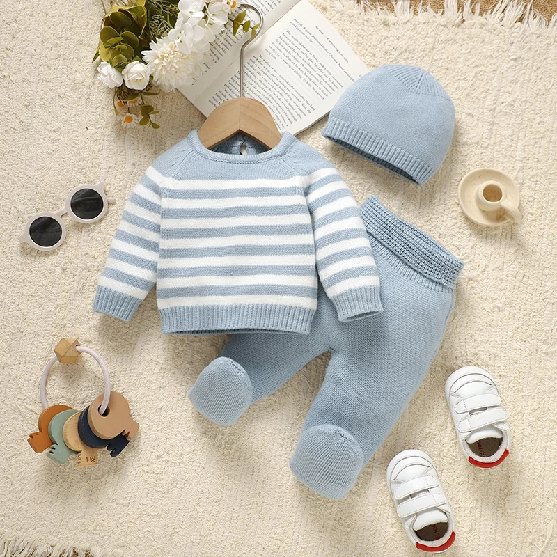Conjunto de ropa para bebés recién nacidos, suéteres tejidos de manga larga con cuello de tortuga, Tops, Leggings y sombreros, traje infantil de 3 uds., otoño e invierno